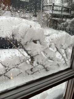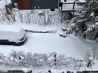 Images of the garden smothered in snow book-ended by the tulips warming my heart –
