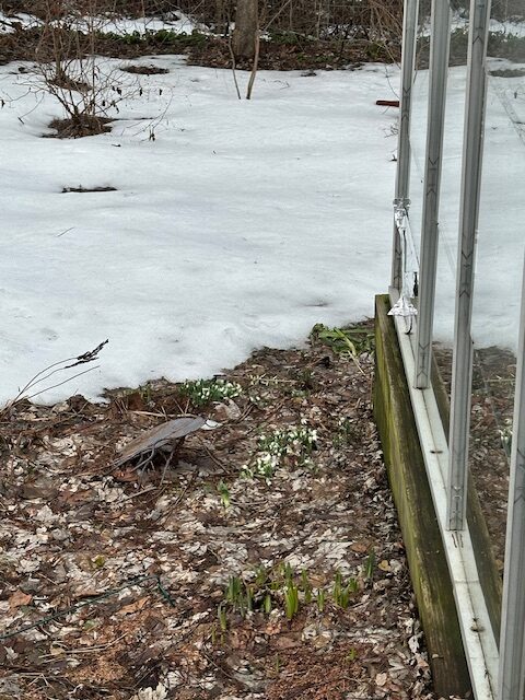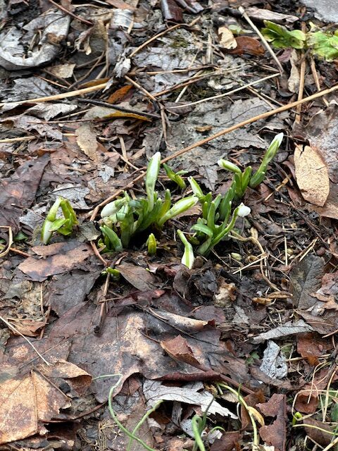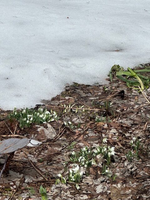 the snowdrops! Emerging from a harsh winter ( I’m aware it’s not done yet!), starved for sightings of new and joyous growth, the clumps of shimmering snowdrops are glorious. I give props to the lemon-drop yellow winter aconites scattered like jewels as well. These ephemerals might be diminutive in stature but their parts are mighty in this moment. There are no small parts in a good garden. While some plants have their shining moments, it does not happen in isolation. A supporting cast is always responsible for it.