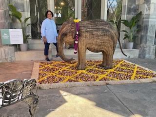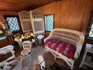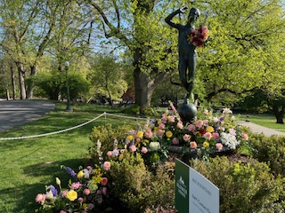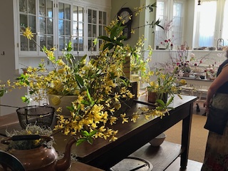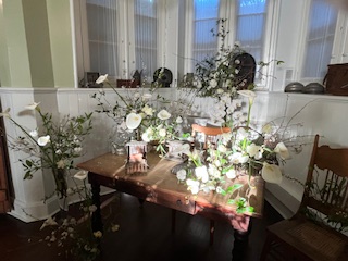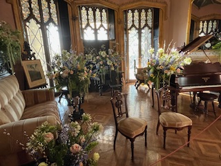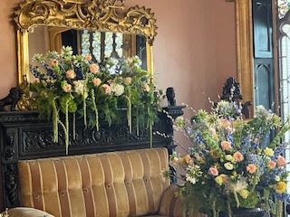 And so, by 4:00 pm Friday April 17, the 2026 Lyndhurst Flower Show was ready for her close-up – the Preview Party that evening. Just enough time for all the artist/designers to get cleaned up, dressed in party clothes and return to see each other’s fabulous creations, meet the first visitors to the show and celebrate a job well done. Over the next 2 days, the mansion hosted over 3,000 visitors . You read that number right!