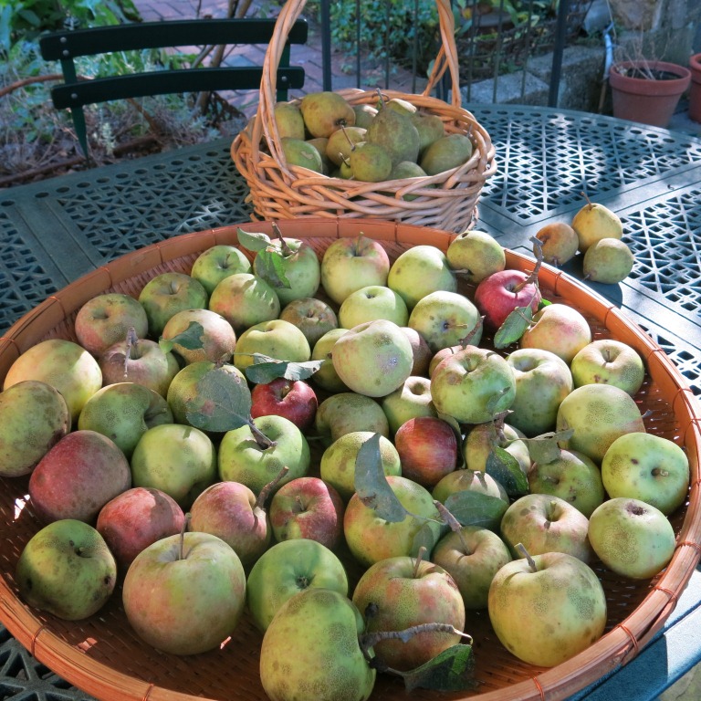 This has been an exceptional year for apples. My garden’s bounty concurs. I’m trying to brace myself for the hours in the kitchen – apple sauce, pies, baked apples, apple cakes ….
