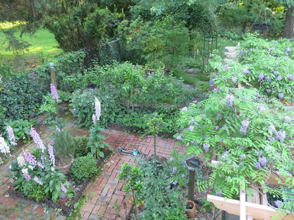 The foxgloves in the herb garden are stunning. They are bigger and taller here than anywhere else. A different variety whose name I must hunt down. The spires keep getting taller and presently I’m concerned they will be toppled by the fierce rain.
