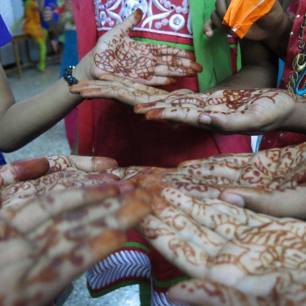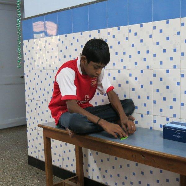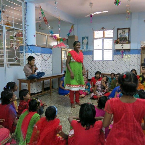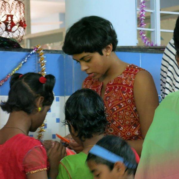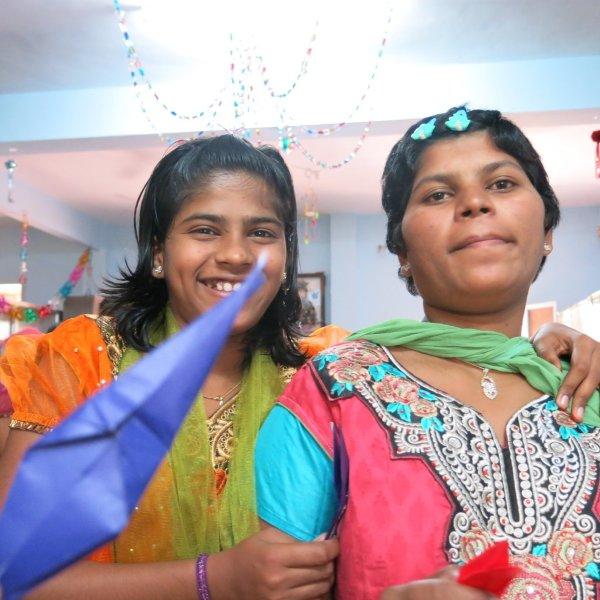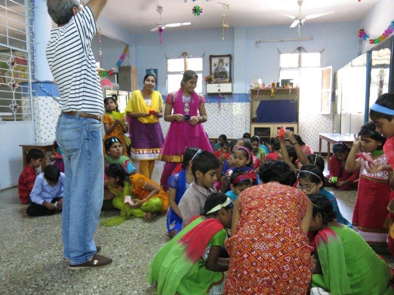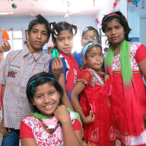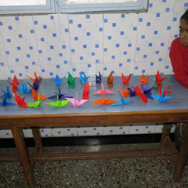 For the rest of the morning we hang out with the children. Just us three and them. No nuns or anybody else. Nice. We watch them play some games including Charades where Murali entertains all of us with his acting/gesturing, we converse a bit, share the sweet treats we’d brought and then Mira shows them how to make origami cranes. While she demonstrates, Murali interprets in Hindi so the children can follow along. I take videos and photos. The children adore having themselves photographed and keep making requests. I am all too happy to oblige – between my visits, back at home, I am given to frequently poring over their photos. Never fails to lift my spirits and put my life in perspective.