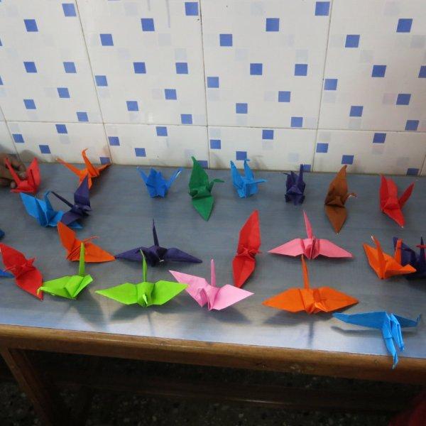 The morning passes quickly. We have a rainbow of cranes, photos galore, renewed connections and the sounds of the children’s laughter filling our heads. It is time for lunch. The children must also get to rest. In their colorful clothes and gaiety, it is easy to forget that they are in need of regular medication and health oversight. So we say our goodbyes and head back to the building that houses Sr. B’s office and the nuns living quarters.