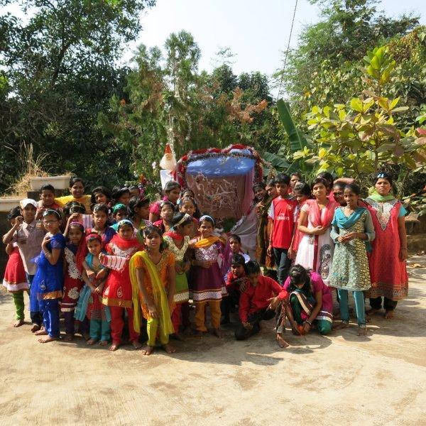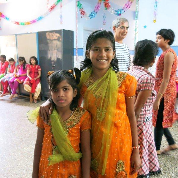 Then it is time for what I’ve been looking forward to all along. Seeing the children again. Dressed in their finest in honor of the holy day, they shine bright and happy. I am thrilled to see how many have grown taller, some have filled out nicely and the oldest ones look quite the young ladies they now are. Sr B informs me that of the twelve boys, the older ones have now been shifted to a boys only ‘home’ in Mumbai where they can pursue their studies. I understand that this is for their own good but still, I genuinely miss seeing those absent faces. David, Hari Om, … I silently send them my love and a wish for all things good in the future. They will forever be in my heart.